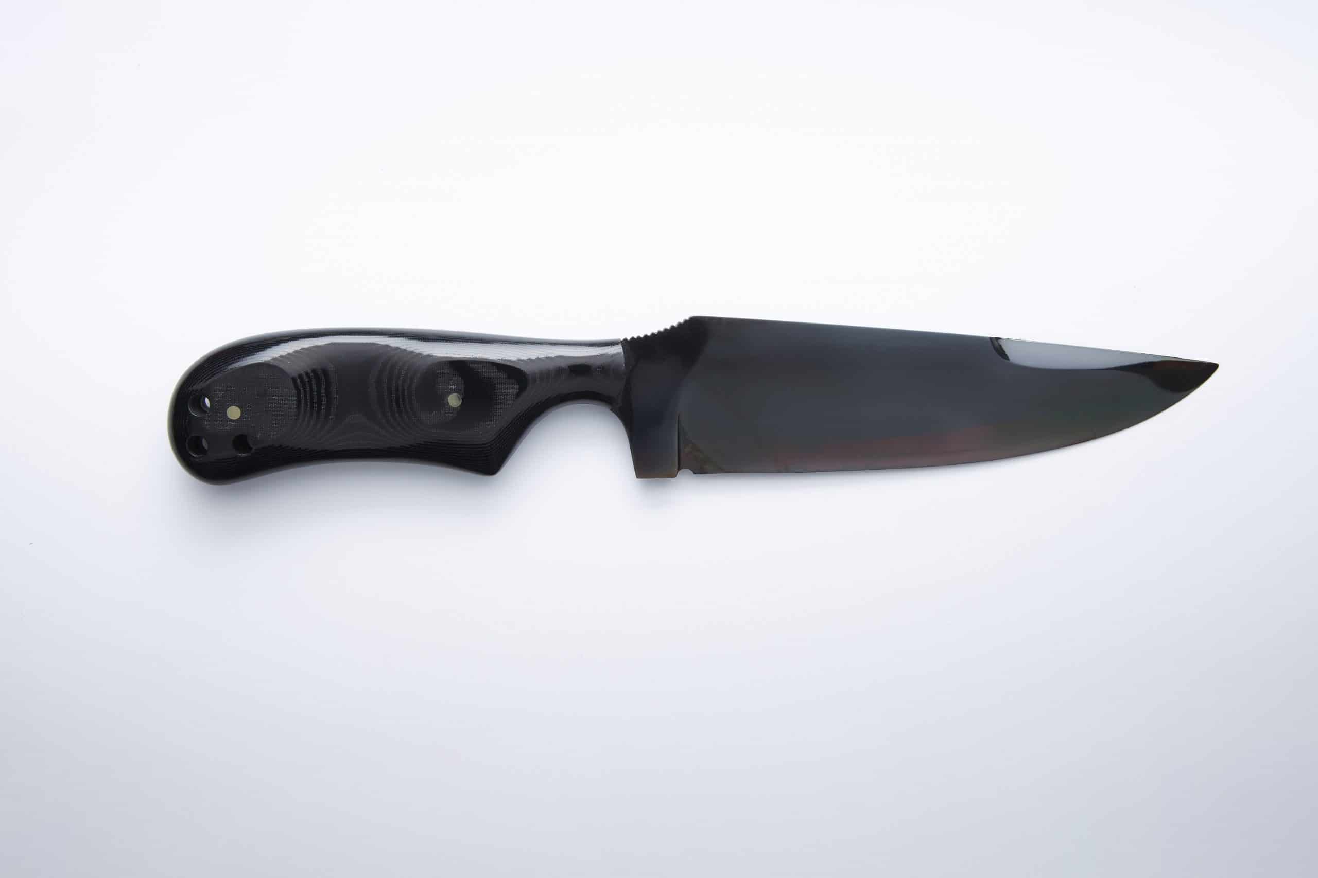 Le dos de lame est plus haut que la poignée, la transition manche/lame porte un appui pouce, cela lui assure un bon maintient lors des chocs en travail de pointe.